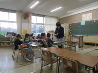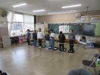 2月3日、1年生の教室に鬼が出現しました。子どもたちは、心の中のいろんな鬼をやっつけていました。5年生が作ったお面をかぶって鬼役をしてくれました。(R8.2.3)