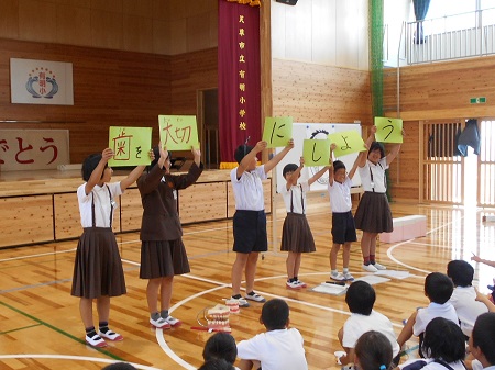運動会お世話になりました。保護者の方々と地域の方々のおかげで準備や後片付けもスムーズでした。プログラム内容でも来賓競技やPTA競技だけでなく、「800m走」や「有明音頭」にも進んで参加していただき本当に本当にありがとうございました。初めての運動会から、雰囲気がよくて素晴らしい運動会になりました。