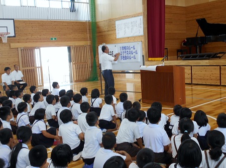宗像先生のお話。 ルールやマナーを守って生活しよう。