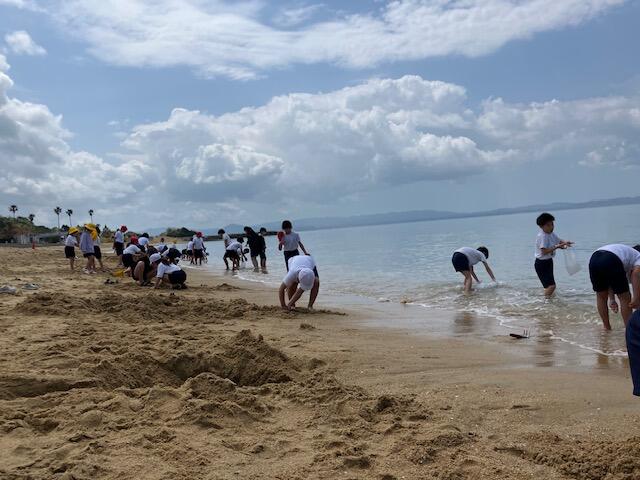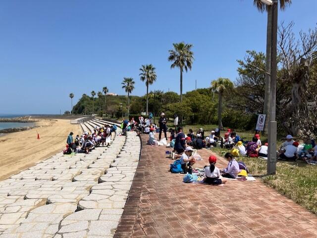 4月18日は1年生の歓迎遠足が行われました。リップルランドまで歩き、砂浜で海水の冷たさを楽しみました。