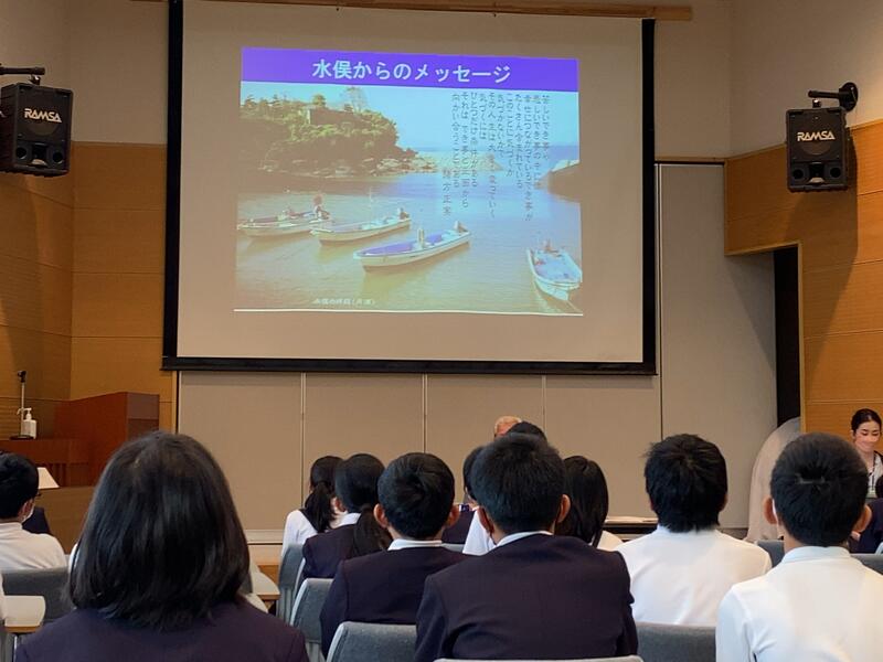11月2日(水)に水俣に学ぶ肥後っ子教室に行ってきました。この教室は熊本県内の小学5年生全てが受講する教室です。教室では、語り部さんからお話をしていただきました。緒方正実(おがたまさみ)さんの「正直に生きること」についてのお話でした。水俣病の辛さや苦しみに誠心誠意向き合い、正直に生きることで得た経験や考え方を5年生に話してくださいました。実際に、水俣に行き、水俣の海を見て、子ども達は多くのことを学びました。今回の学びを学習発表会で披露したいと思います。
