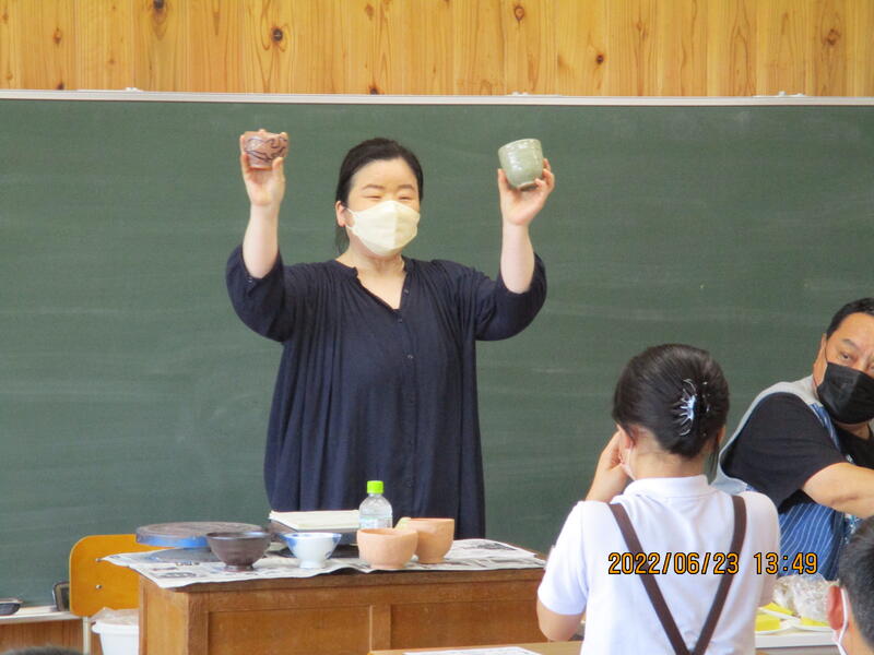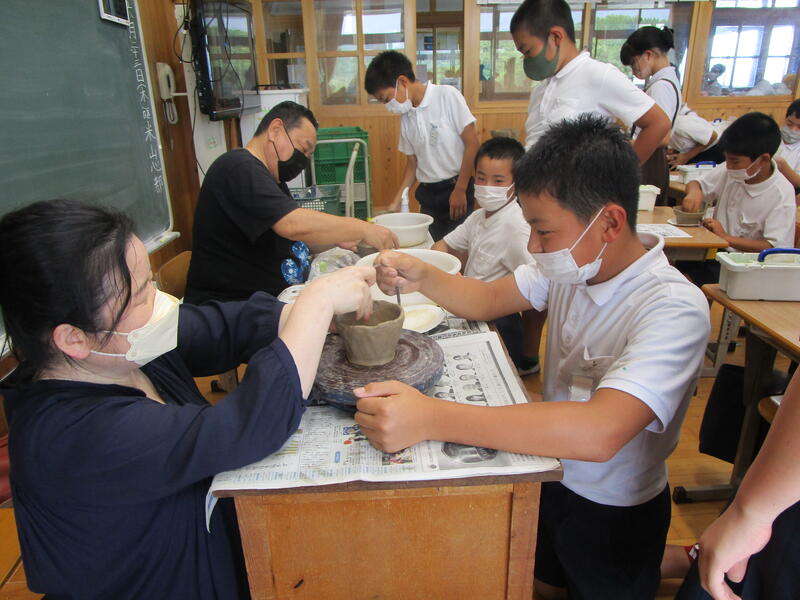 6/23(木)に作陶体験教室を実施しました。陶人房とらいの山田さんにお越し頂き、焼き物作りを教えて頂きました。子ども達は様々なお椀や湯飲みを粘土で形づくりました。「天草の伝統文化である焼き物について詳しくしることができてよかった。」「粘土でお椀や湯飲みの形を作るのが難しかった。」など様々な感想を聞くことができました。