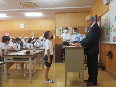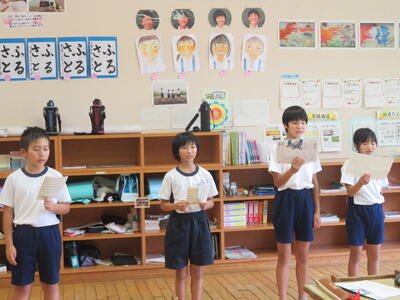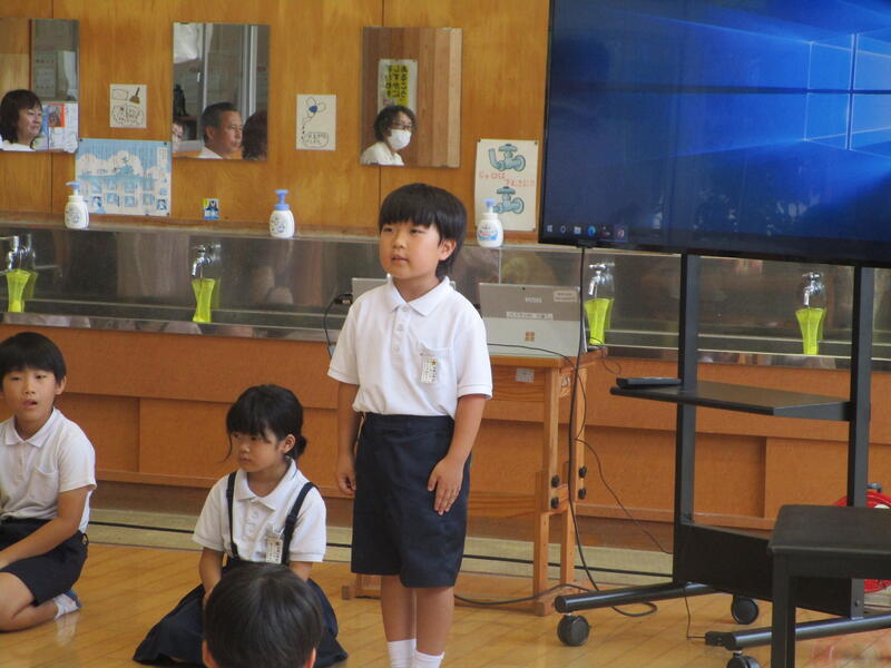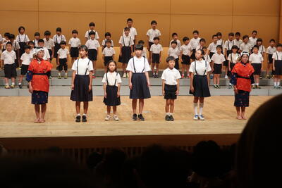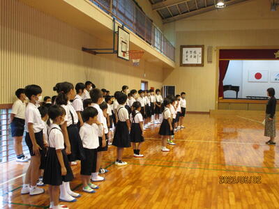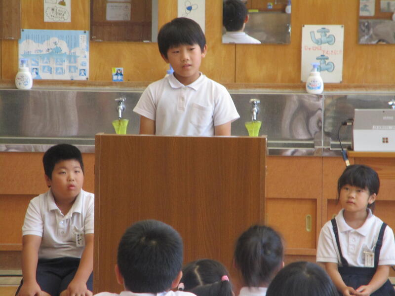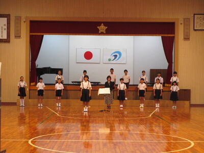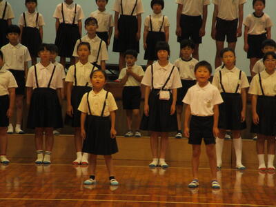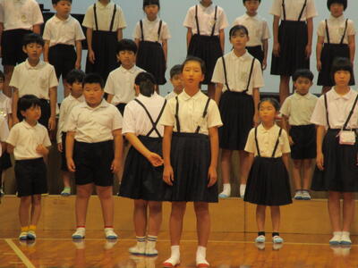今日は一学期の終業式でした。運動会、レクイエムコンサートを始め、学習に運動にと頑張った一学期でした。一年生から六年生の代表6人が、一学期をふりかえった作文を発表しました。先生方のおっしゃることを聞いて素直な心で前向きに頑張った様子が分かりました。