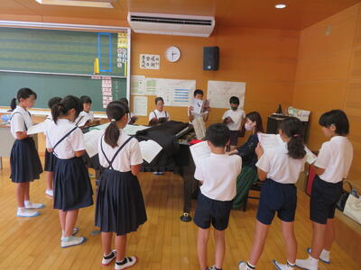 5時間目今月の歌「歌よありがとう」を4人できれいに合唱していました。校内に美しい声が響いています。