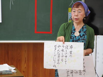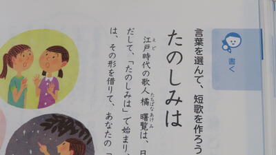 6年生は国語で短歌の勉強をしています。今、5,6年生で合唱している仁田直美さんの「SAKURA」は二つの短歌からできた曲です。平和や子供たちの未来に願いや思いが込められたこの曲は、本当にすばらしいなあと感じます。