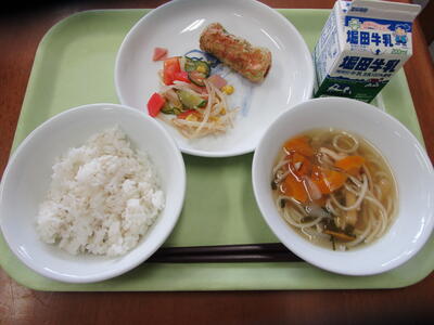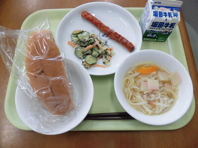 6月29日の献立は、『コッペパンカット、ひらめんスープ、ウインナー、ひじきのマヨネーズあえ』でした。給食では定番のメニュー「平めんスープ」ですが、食べながら、ふと思ったのが「これまで食べた平めんスープより美味しい…」。そして、定番メニューのサラダを食べてみるとやっぱりシャキシャキで美味しい。何でかな…?。味付けはもちろんですが、下ごしらえがいいからじゃないかな…。一人勝手に想像しています。いつも美味しい給食ありがとうございます。