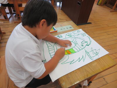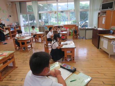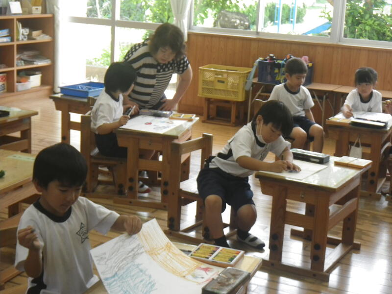 夏休みに入って6日間が過ぎましたが、天草小の子供たちは、まだまだ学校で意欲的に活動しています。先週は、水泳記録会で大いに頑張りました。今週は、昨日から2日間、塚原前校長先生のご指導の下、4年生から6年生は、絵画教室に参加しました。細部まで丁寧に書き込まれた下書きに、塚原先生から彩色の指導を受け、美しい水彩画が仕上がってきました。絵の美しさもさることながら、2日間で合計6時間もの長時間、絵を書き続ける子供たちの集中力は「あっぱれ」です。明日からは、しばらくはゆっくり夏休みを過ごしてください。1~3年生は、夏休みになりましたが、学校で絵の勉強をしたり水泳をしたりしています。
