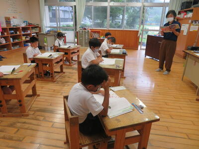 今日は3,4年生の絵本の読み聞かせの日でした。葛籠貫さんから「8月6日のこと」という絵本を読んでいただきました。子どもたちは、広島に原子爆弾が落ちた時のことを知り様々な思いを考えました。