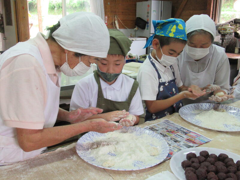 3年生はかしのき館に出かけ、福連木まんじゅう作りの体験をさせていただきました。美味しい福連木まんじゅうの秘密をたくさん学ぶことができました!
