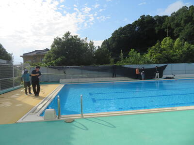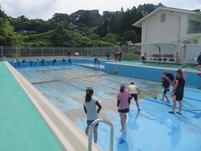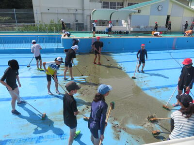 みんなで協力し、あっという間にきれいになりました。プール開きが楽しみですね。