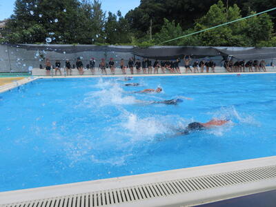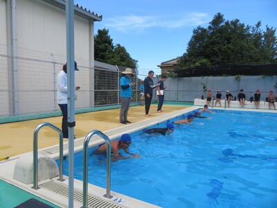 今日は河浦小学校で、上記記録会があり、5,6年生が出場しました。練習の成果を発揮し、見事に泳ぎ切りました。自己ベストを出せた人、きれいなフォームで泳げた人、泳いだ後の笑顔がまた輝いていました。