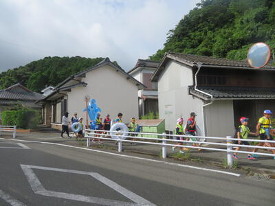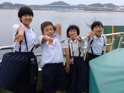 5年生はあしきた水俣方面に今朝元気に出発しました。有明にて