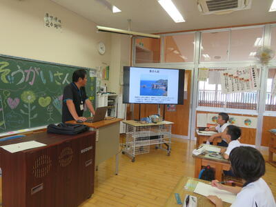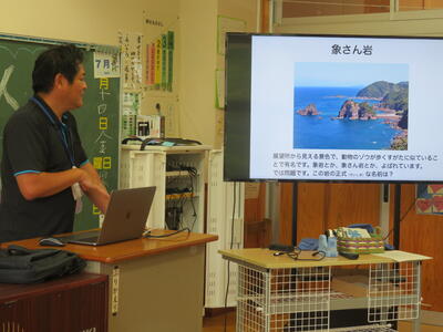 4年生は「下田の宝を見つけよう!」をテーマに学習しています。今日は鵜飼宏明学芸員様に来校いただき、妙見浦、鬼海ヶ浦見学に向けての事前学習を実施しました。来週は実際に現地に出て行き、学習します。