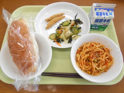 7月18日の献立は『ミルクパン、ミートスパゲティ、きびなごフライ、海藻サラダ』でした。先週は2日間の出張で給食が食べられず、3連休も入り、久しぶりの給食でした。5日間も食べたいものを食べてしまい栄養が偏ってしまいました(反省…)。もうすぐ夏休みに入りますが、給食がなく、彩りと味の変化のない昼食がさみしい限りです。給食のありがたさを痛感する日々が続きそうです。あと二日間、美味しい給食をしっかりと味わいたいと思います。