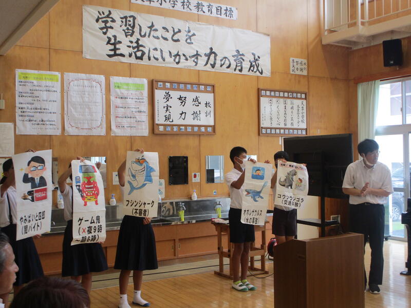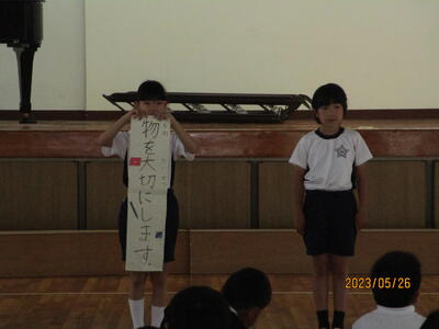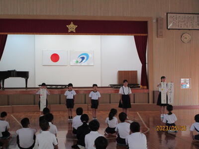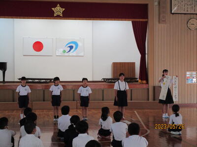 今日は児童会総会でした。どの委員会も責任を果たそうと立派に活動し、活動内容などを広用紙に上手にまとめ、堂々と発表することができました。低学年の皆さんもお礼を上手に言えました。