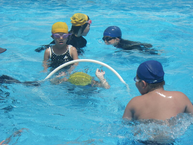 明日の水泳記録会を前に子どもたちは練習を頑張っています。明日の開始時刻は10時25分です。放課後は、先生たちが子どもたちの応援テントを張っています。