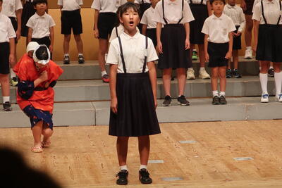 6月3日土曜日に、勤労者体育館で上記大会が行われ、4年生が出場しました。4年生が天草市子供民生委員として、地域のおじいさん、おばあさんと交流していきます。当日は、合唱とダンスでサロンに参加いただいた方に楽しんでもらいました。
