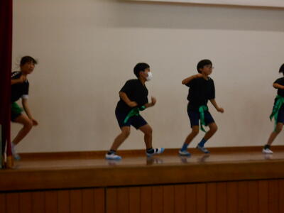 「さっさ、きびきび」を合い言葉に、真剣に練習に励む子供たちです。1年生も全体にしっかりついていっています。高学年ダンスです。リズムにのって体全体で表現!
