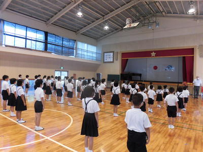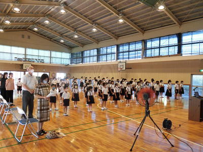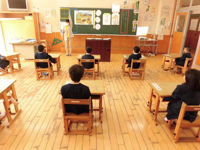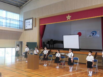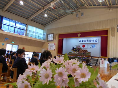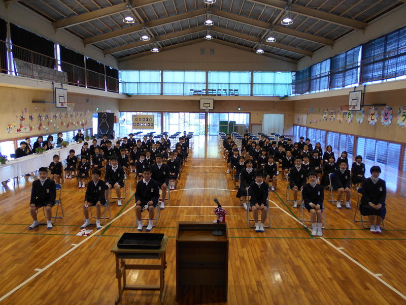 今年度は来賓の皆様をお呼びすることができず、申し訳ありませんでした。また、卒業式も内容を変更して行いました。子どもたちの自慢の歌も歌うことが叶いませんでした。それでも、国歌や校歌の伴奏を聞くと、自然に体が揺れ、口元が動き、心で歌う姿がたくさん見られました