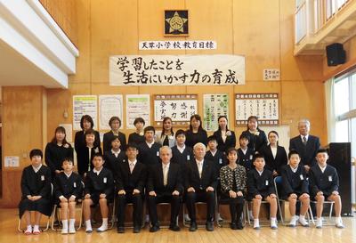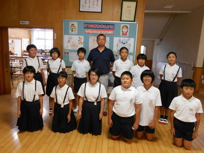 (校長先生と6年生)