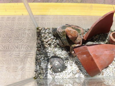少人数教室のクサガメも元気です。ひなたぼっこをしました。