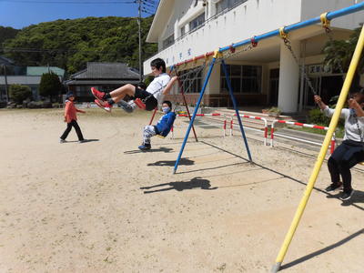 連休中は、遊具が使えなくなっていましたが、今日から使えます。