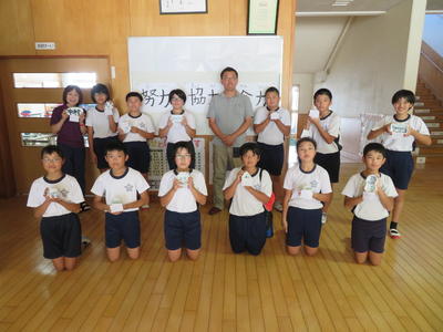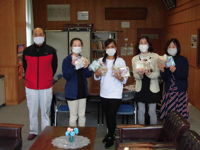 給食センターの皆さんから児童用と職員用のマスクを寄贈していただきました。給食センターの皆さんのご厚意に児童・保護者の皆様とともに深く感謝したいと思います。ありがとうございました。
