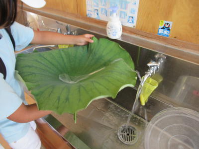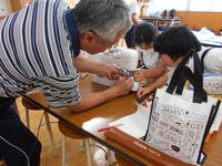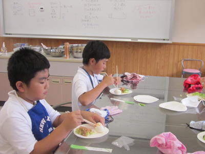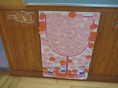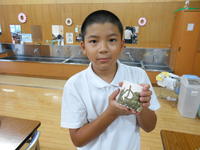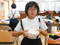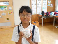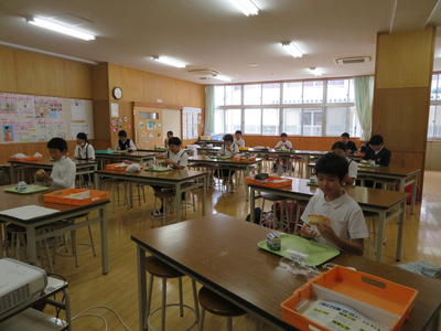 さて、今日は給食ではなく弁当の日でした。「梨が入っています。」「ぼくの好きなものを入れてくれました。」と笑顔で食べていました。写真は1年生。