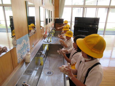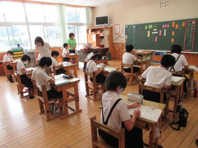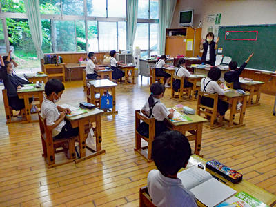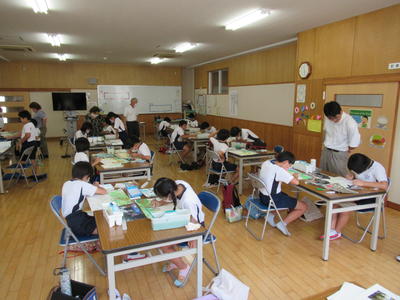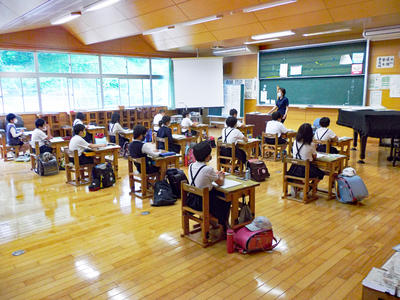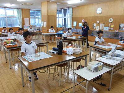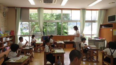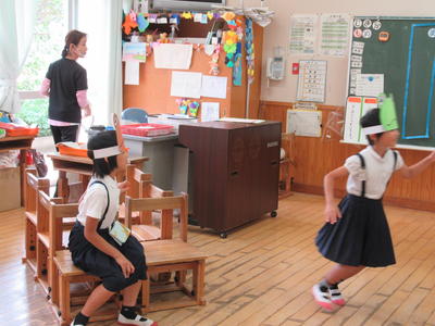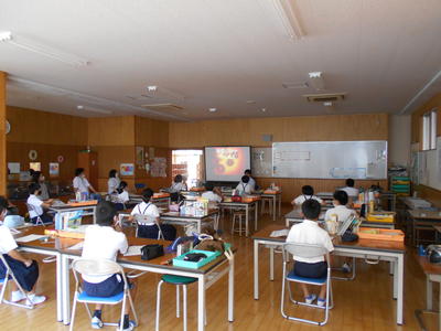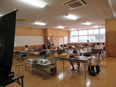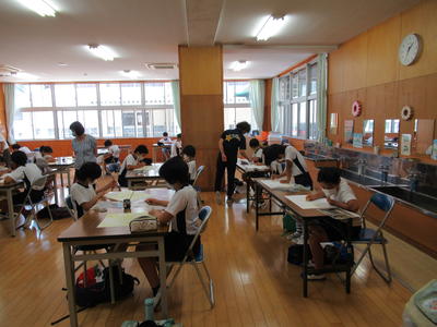 4年生と6年生は人数の関係上、それぞれ音楽室とランチルームで授業をしました。