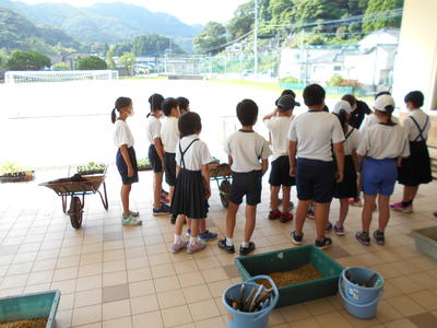 ・3年生は持ち帰り用の袋を持ってくる。