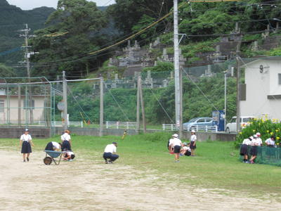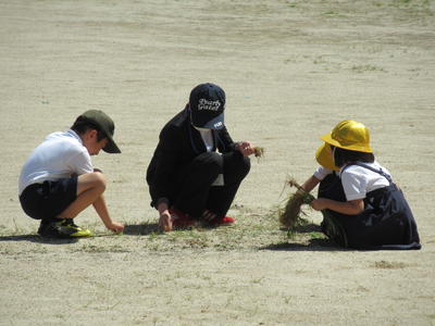先週は、職員で草むしりをしました。運動場が少しきれいになりました。