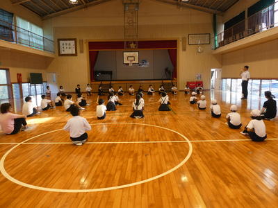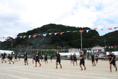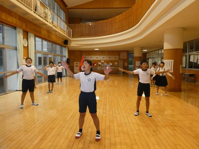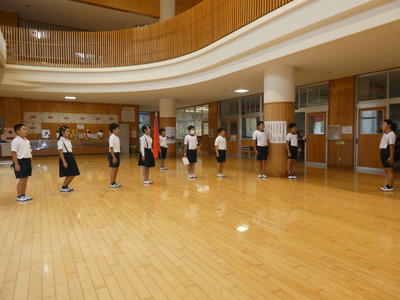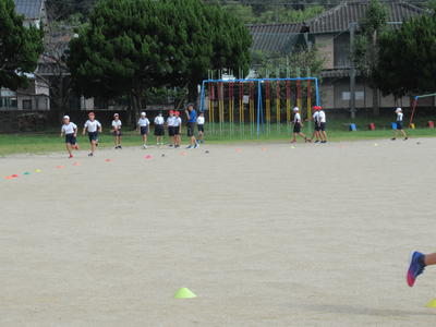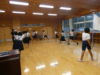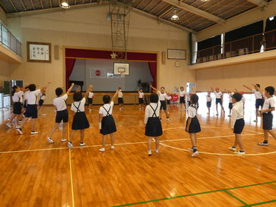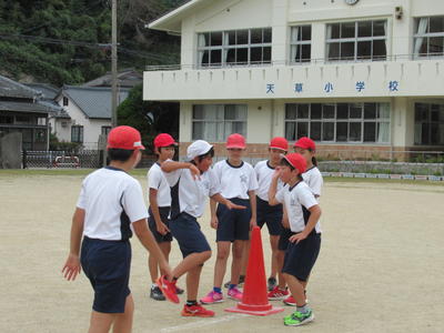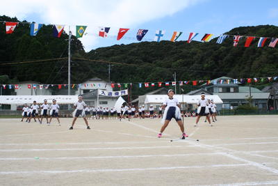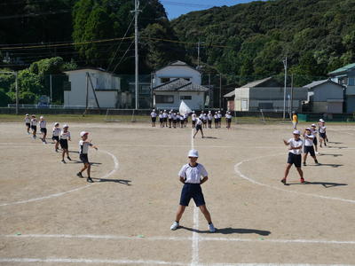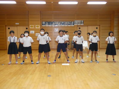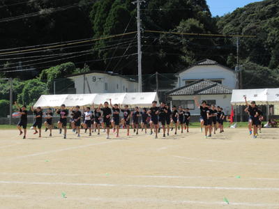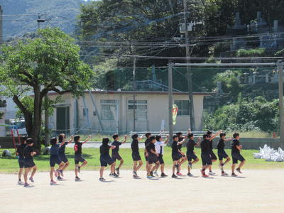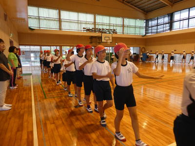 今日は、朝から運動会の全校ダンスの練習がありました。牛深ハイヤです。隊形移動をしました。