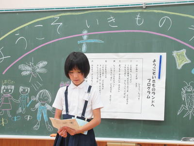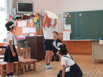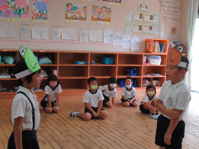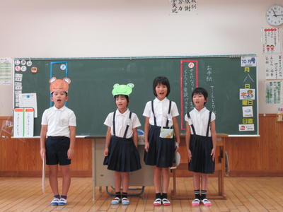3時間目に、2年生が国語「お手紙」の音読劇に1年生を招待してくれました。