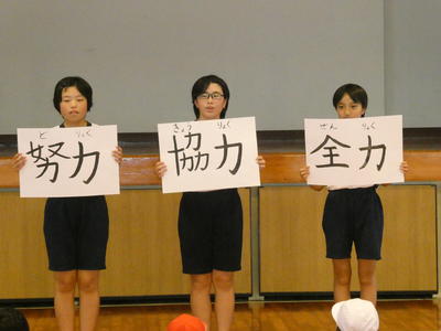 自分の力を精一杯出してよく頑張りました。子ども達が輝くとてもいい運動会でした。運動会を通して身に付けた力を今後の生活にも生かしていきましょう。保護者の皆様、地域の方々、ご協力ありがとうございました。
