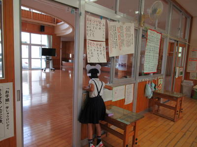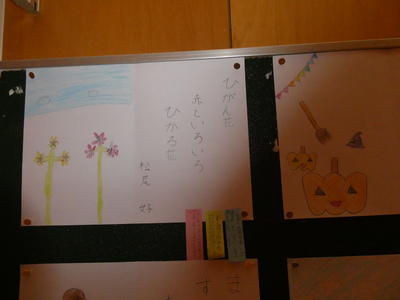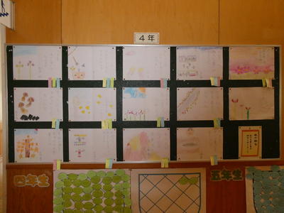2階廊下には4年生の秋の詩が掲示してありました。