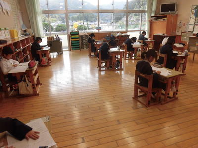 ・持ってくる物は筆記用具とうわぐつが必要です。ランドセルで登校させてください。