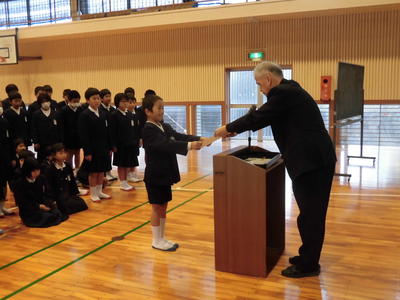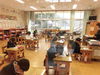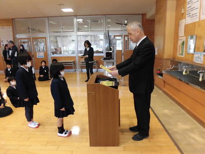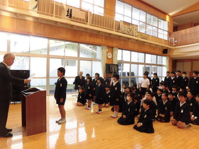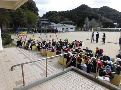 ・全校児童参加、通常登校。卒業式はPTA会長を除き、来賓の参加は取りやめる。