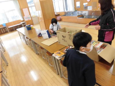 ・移動図書と図書室で借りた本を持たせてください。明日、全て返却した1~5年生は、さらに5冊まで借りることができます。