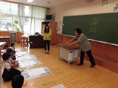 次に4~6年生はポスターです。絵に字を入れます。