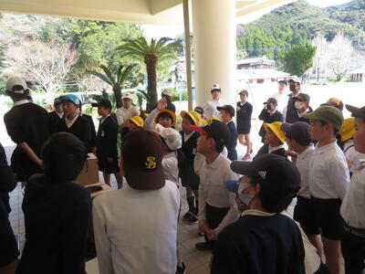 新学期の始まりにあたり、希望と期待に胸を膨らませ、2~6年生全員が元気に登校しました。