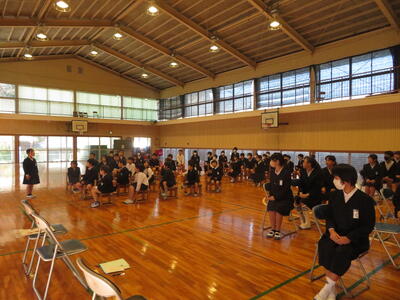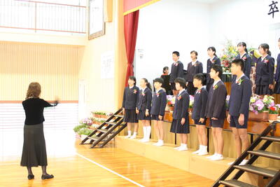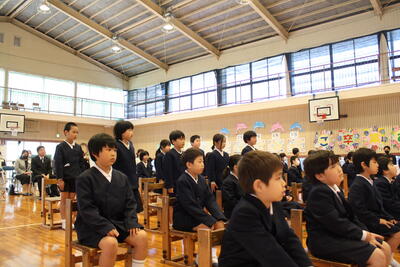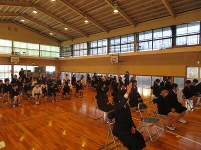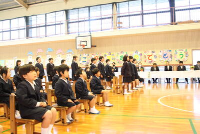 今週水曜日から、卒業式の流れの確認や歌の練習を始めました。今日は主に呼びかけの練習をしました。練習の後は、児童の感想発表です。今日もたくさん手があがりました。