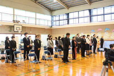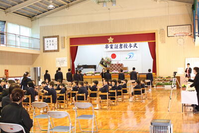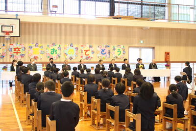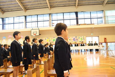 (卒業式予行練習) 金曜日は卒業証書授与式です。友達、後輩、地域の方々、ご家族の方々、先生方、たくさんの思いが卒業生に集まり、当日を迎えます。思い出の詰まった学び舎を大きく羽ばたいていけるように、予行練習を実施しました。子供たちは先生たちの話をよく聞いて頑張ることができました。