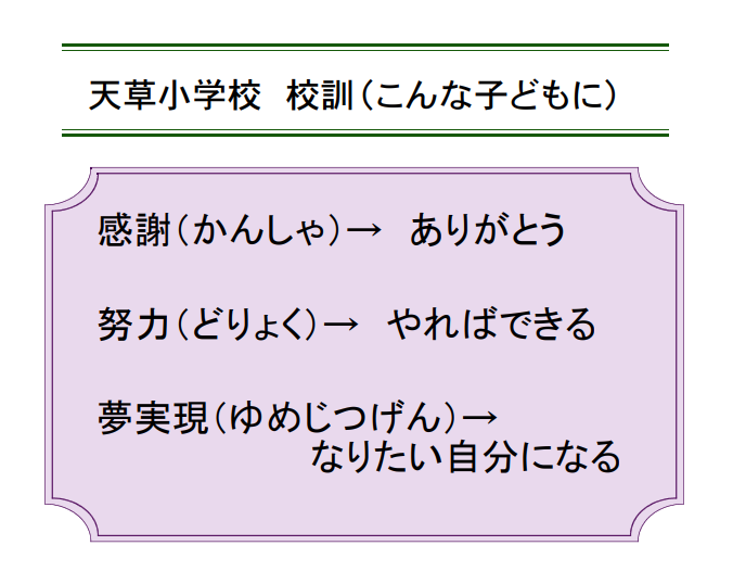 その後の始業式では、校長先生から、天草小の3つの校訓「感謝・努力・夢実現」についてのお話がありました。