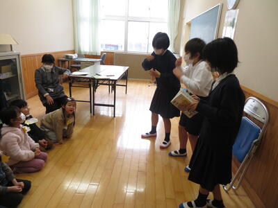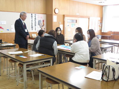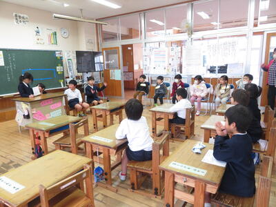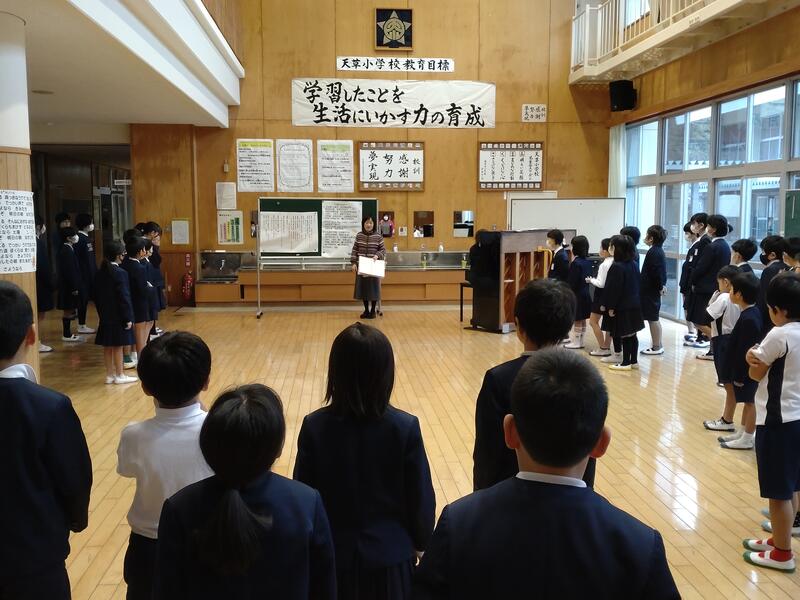 4月から6名のお友達が天草小学校に入学してきます。今日は体験入学で一年生、そして5年生と一緒に過ごしました。保護者の方は.ランチルームで生涯学習課社会教育推進員の西川先生から親の学びとして、体験講座がありました。