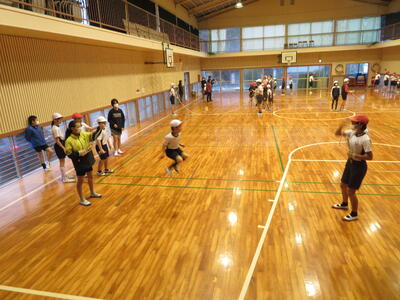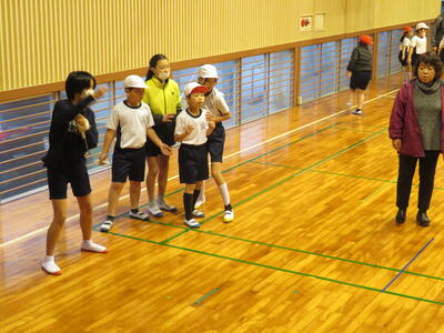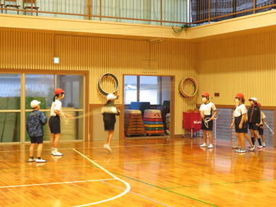 縦割り班での長縄での八の字跳びの練習です。低学年の子供たちも上手に跳べるようになってきました。