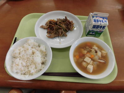 さて、ところで今日の給食のメニューは、麦ご飯、セロリきんぴら、ちょい辛豚汁、シューマイでした。