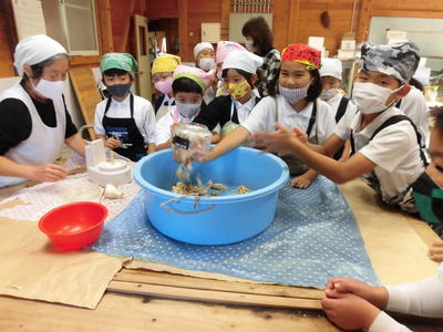昨日のことですが、3年生が「総合的な学習の時間」で福連木まんじゅう作り体験をしました。毎年お世話になっています。