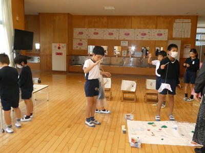 4から7班は風船ほうき。意外とむずかしい。