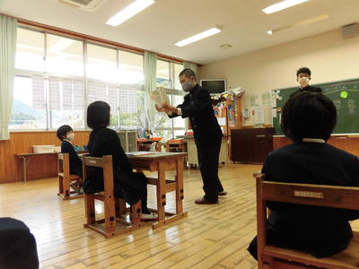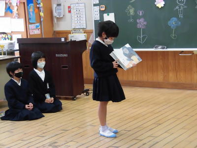 先生が、授業のはじめに課題を示したとき、「え?」「何だろう。」とがやがやが起こりました。おじいさんの存在について、みんなで考えて、深い読みをしていました。今日は楽しかったそうです。さすが4年生!