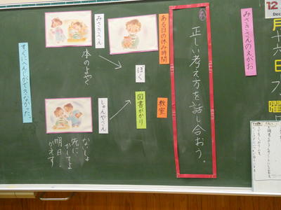 3時間目の3年生の道徳の様子です。「ぼく」の心の葛藤を追いました。こういうことは、もしかしたら子どもたちにとっても、身近な場面なのかもしれません。考えたり発表したり、意欲的な子どもたちでした。
